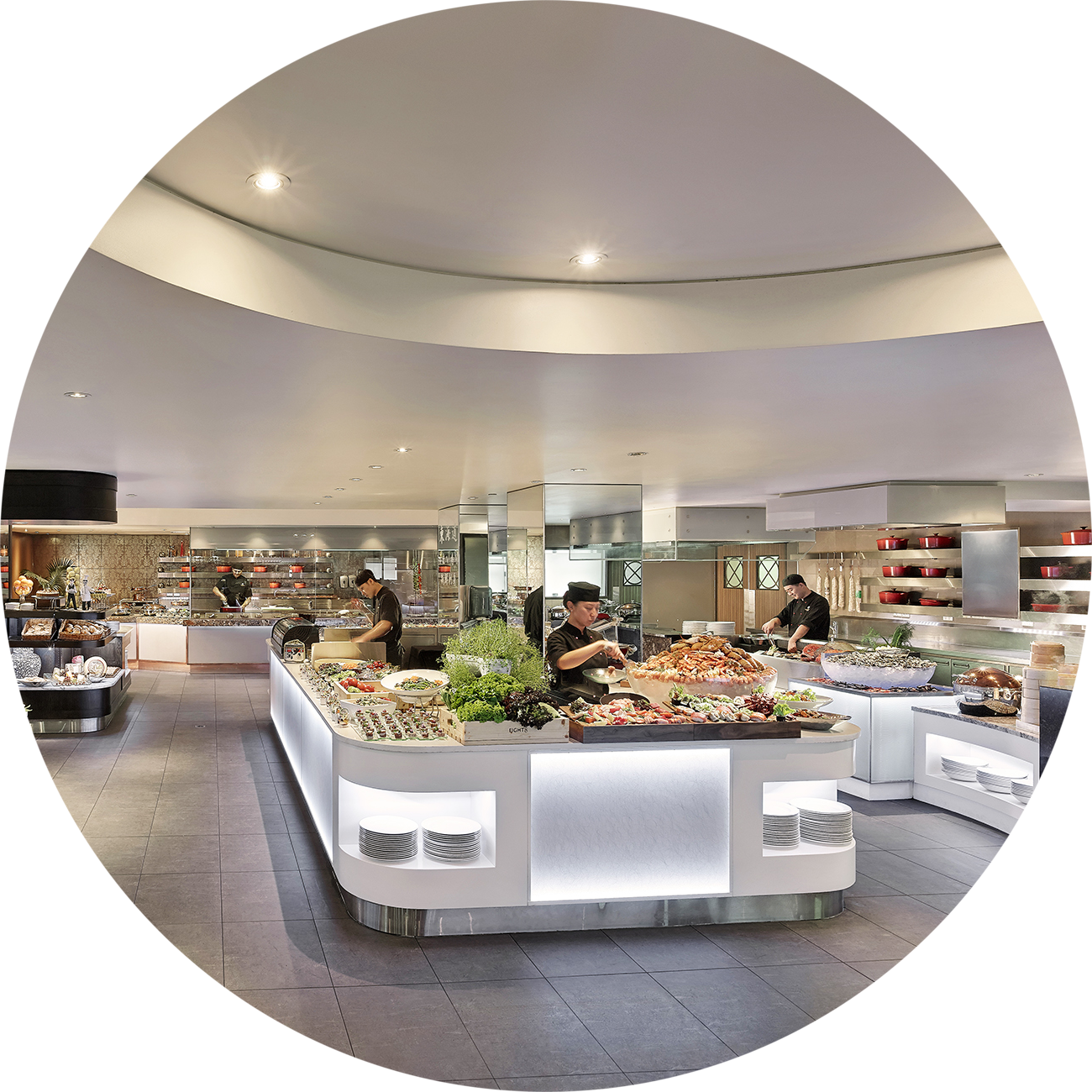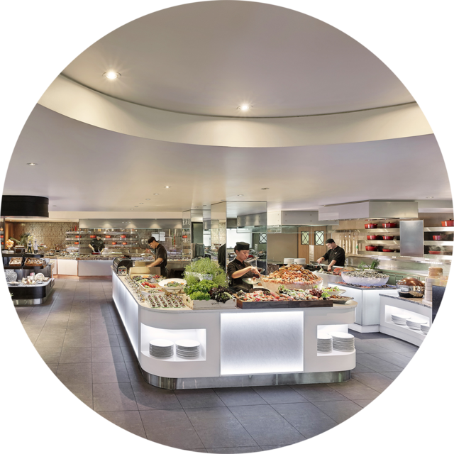 Eight restaurant offers a unique interactive dining experience featuring the delicious flavours of eight international kitchens. Watch as your meal is created to your taste, from freshly made sushi and sashimi to a succulent cut of meat grilled to order. Enjoy as many dishes as you please from our eight kitchens, and find the perfect match with our selection of the finest wines, beers and beverages.