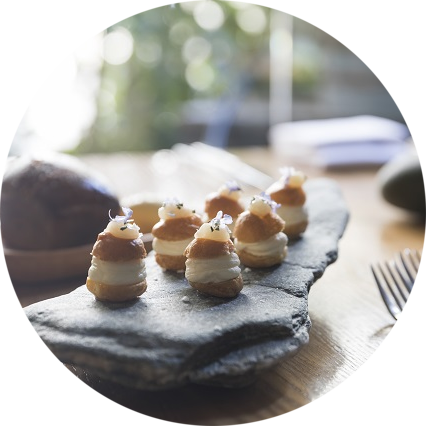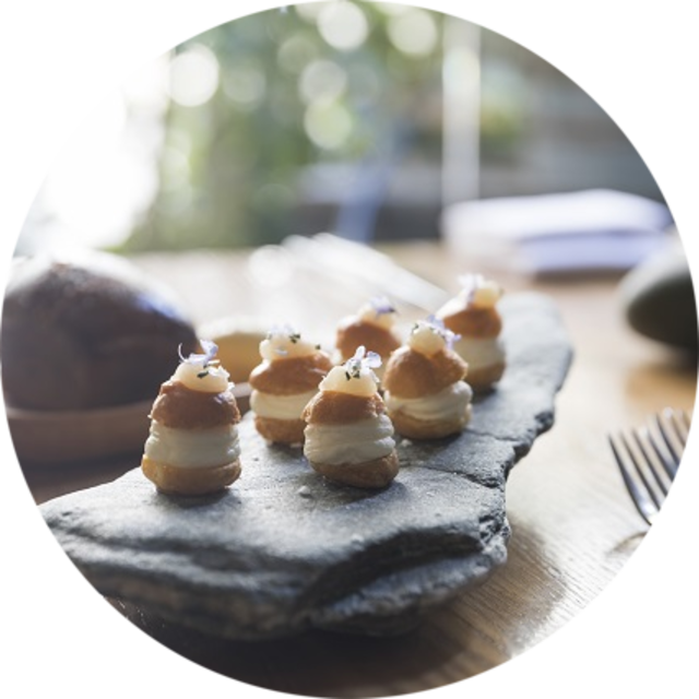 Goat cheese profiteroles, Rātā blossom honey
