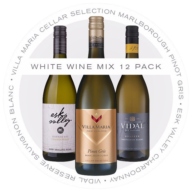 Vidal Reserve Sauvignon Blanc (4), Esk Valley Chardonnay (4), and Villa Maria Cellar Selection Pinot Gris (4)